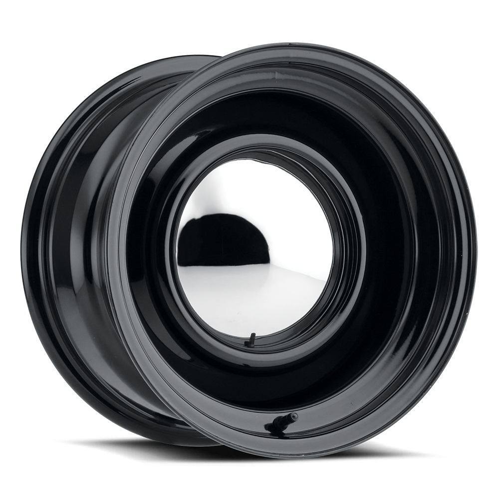 Construction: Steel. Finish: Powder Coated Gloss Black. Inside nubs for 14"-16", 20" & 22" caps is 7 1/2". Inside nubs for 17" & 18" caps is 7". C52 cap included with this wheel. C52 is the only cap that fits 20" at this time. Lug nuts not included. For part number 510-8010400, we use a reverse rim to achieve backspace. *Wheel does not fit Jeep or Samurai. Please check fitment before mounting.